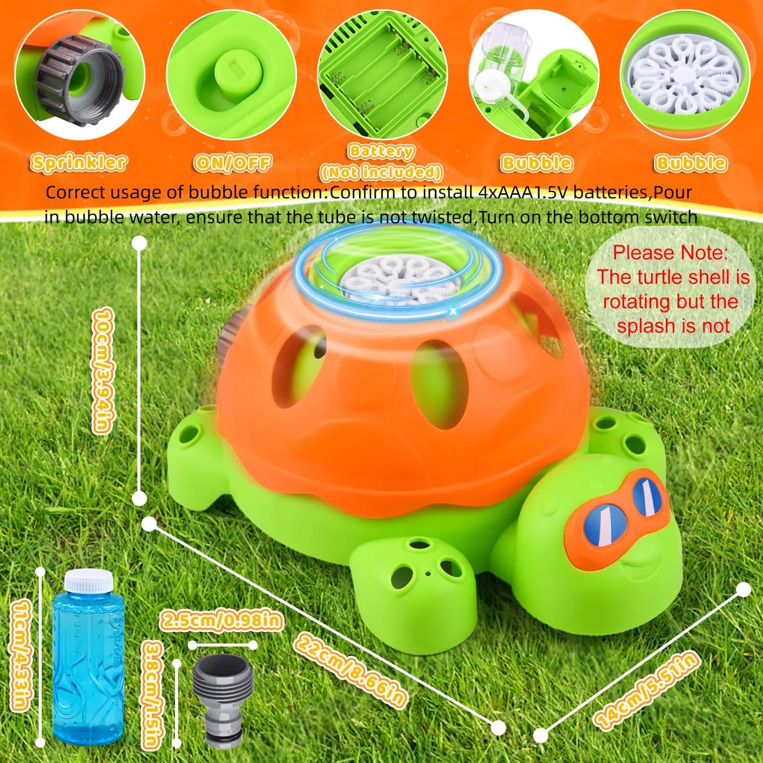 【2 in 1 Water Sprinkler Toy for Youngsters】Splashing & Bubble Youngsters sprinklers for yard , connect the spinning turtle youngsters sprinkler to your backyard hose take pleasure in splashing enjoyable whereas watering the garden. Unbelievable bubble will add extra enjoyable! We’ve provided a further hose connector on your comfort. You may take pleasure in taking part in with your loved ones on the seaside or on the grass in your yard through the sizzling summer season trip. Girls and boys will love this youngsters sprinkler on yard water actions!
