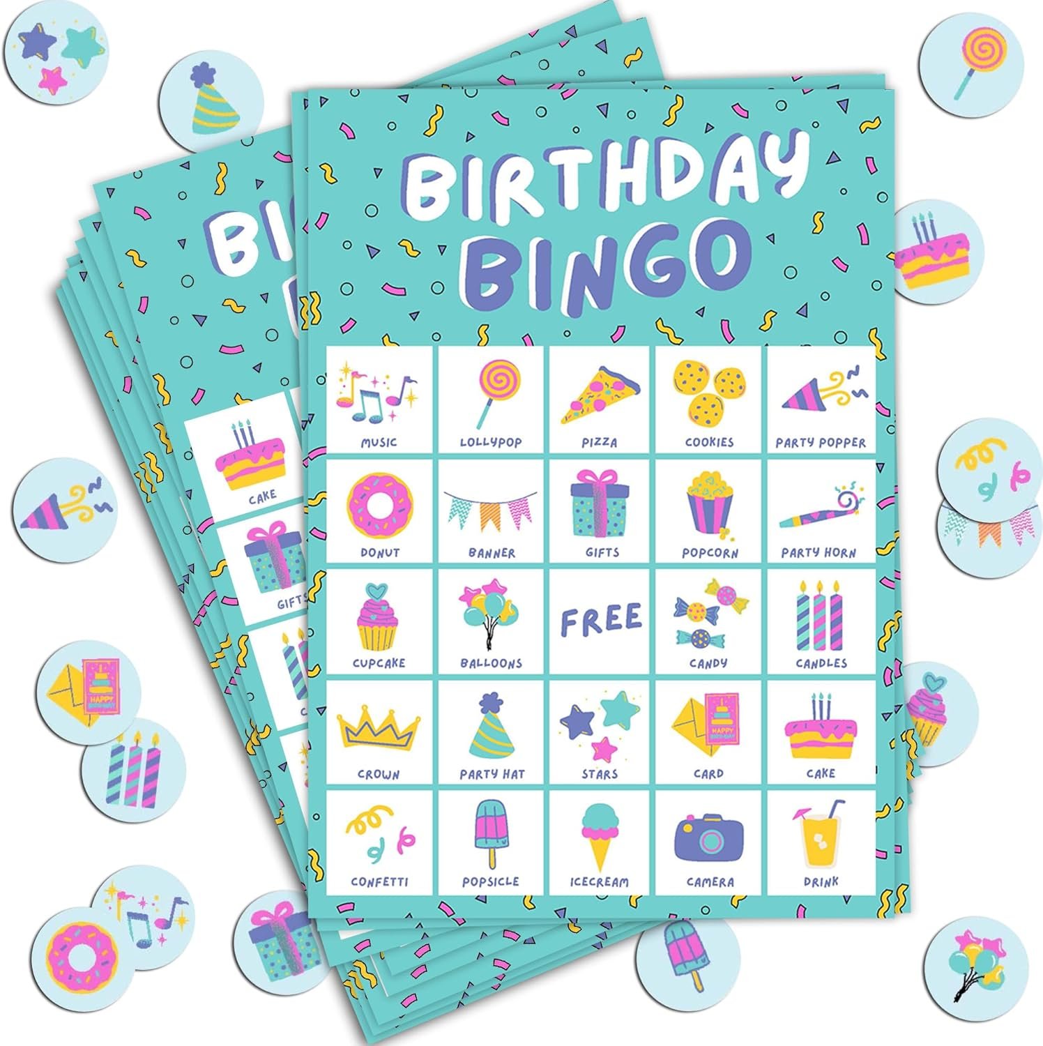 BLUE BIRTHDAY BLISS: Brighten up your birthday celebration with our vibrant pink Birthday Bingo Recreation and Sticker Sheets! Good for as much as 23 friends.
