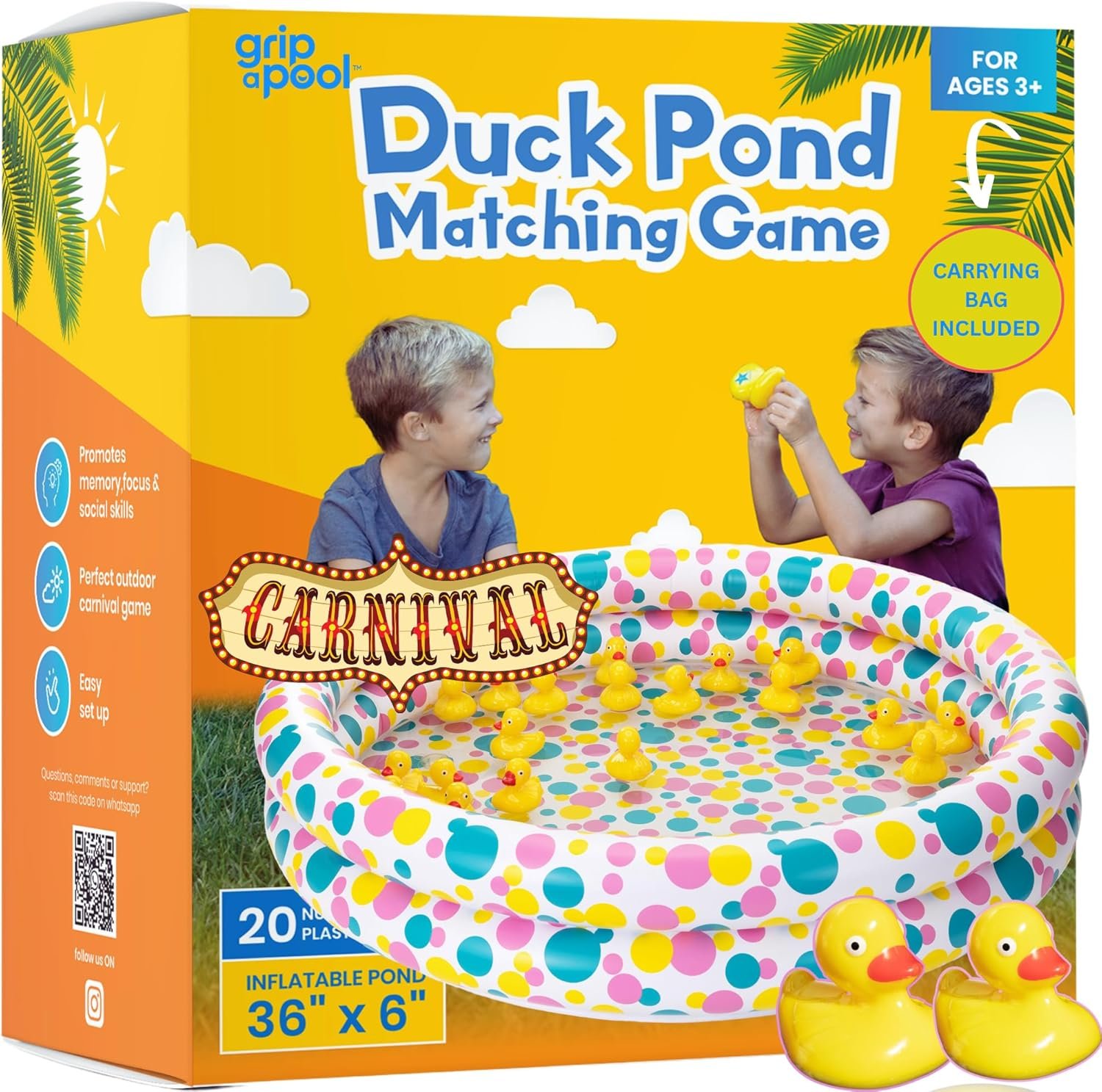 CLASSIC CARNIVAL FUN AT HOME – Convey the thrill of carnival video games for teenagers proper to your yard! This duck pond matching sport is successful at birthday events, faculty occasions, and out of doors playdates. An attractive matching water sport, a enjoyable and interactive duck pond matching sport for teenagers, good for out of doors water actions.
