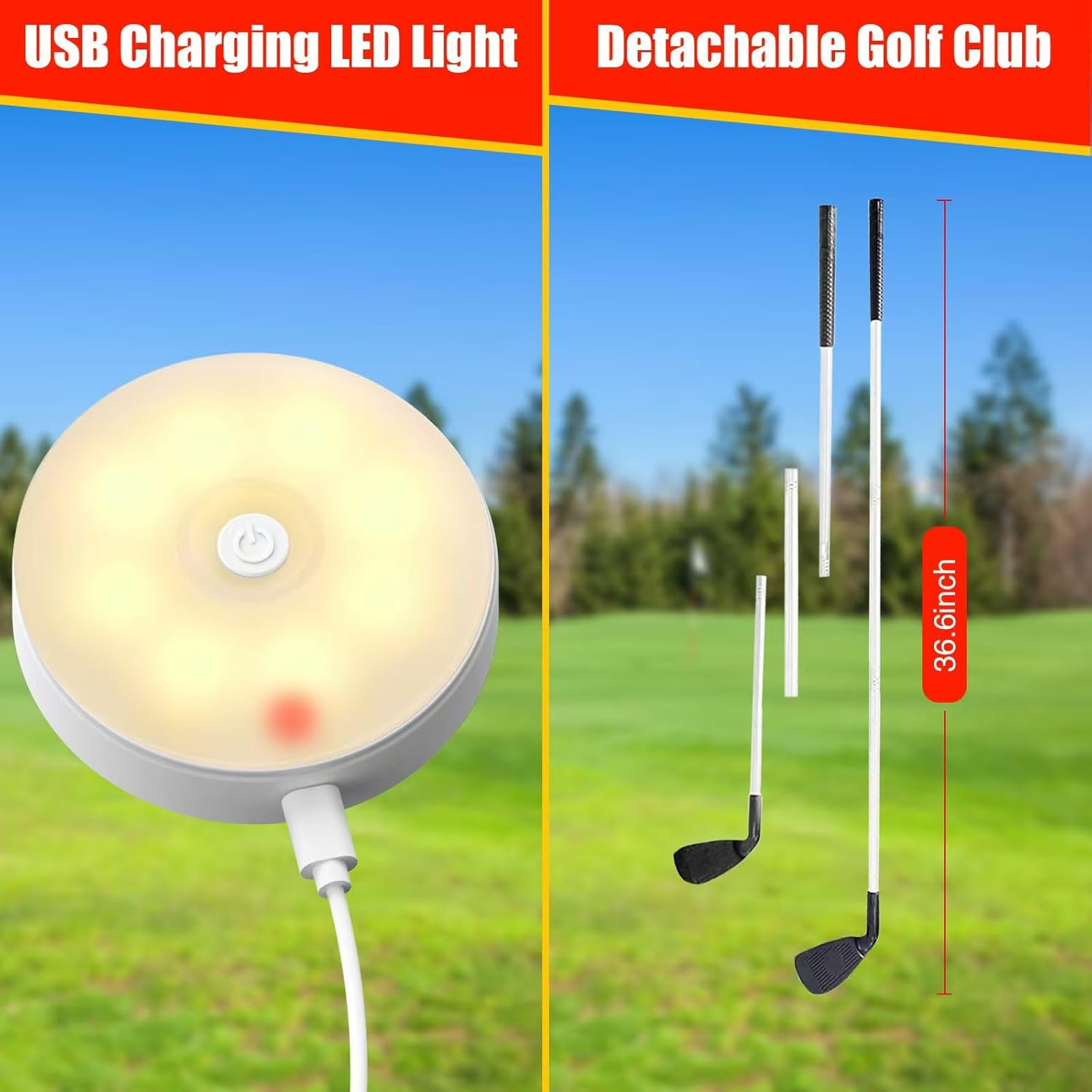 【Comes with LED lights and golf equipment】:The removable golf equipment are appropriate for everybody and the ergonomic non-slip grip offers consolation and management with the texture of an actual membership. It additionally comes with 6 LED lights that may be positioned within the gap. Playable even at evening, good for events and household video games, this might be a blast regardless of the place you’re.