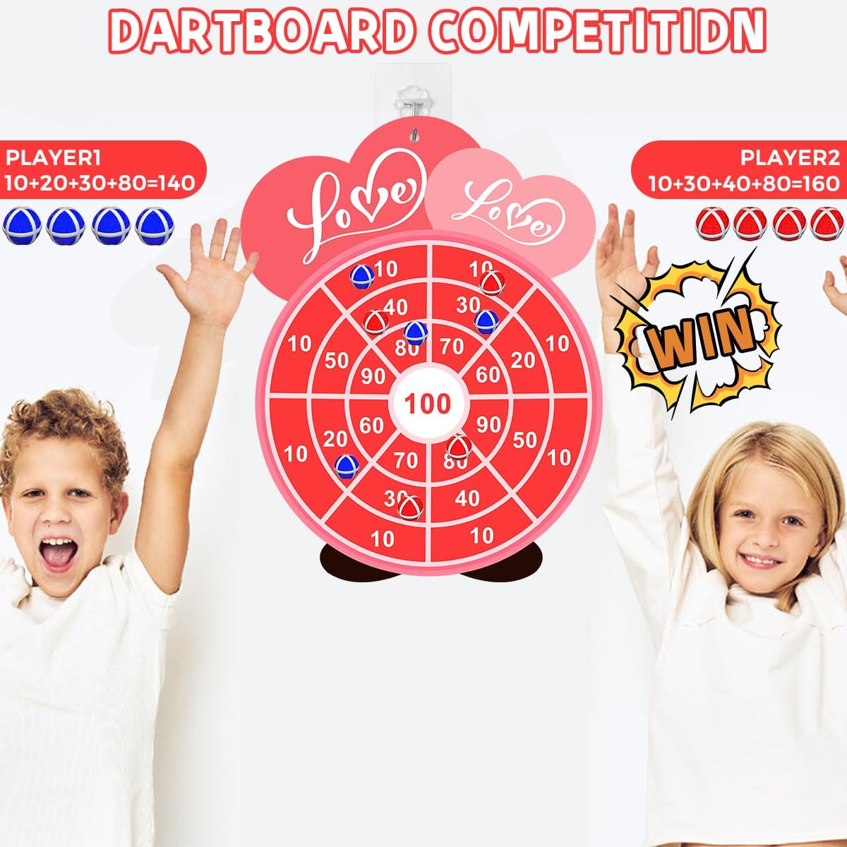 Valentines Day Dart board Recreation for Children: 1* giant board, 12* sticky balls (3 colours), 2* hooks. The dart board’s heights are 27 inches; a bigger measurement means greater hit charges and extra enjoyable for youths and freshmen.