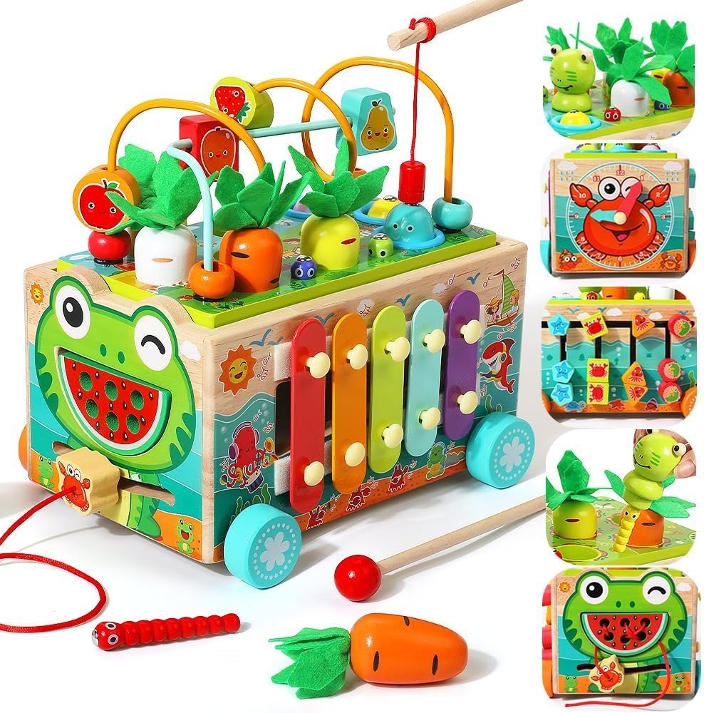 MONTESSORI 1 YEAR OLD TOY FOR TODDLERS: The package deal you obtain accommodates a multifunctional montessori exercise dice packed in a field. The components embody – 1 cute frog, 6 radishes, 4 caterpillars, 3 fish and three blue plastic ponds for fish, 1 fishing rod, 1 small hammer and a bit of watermelon.
