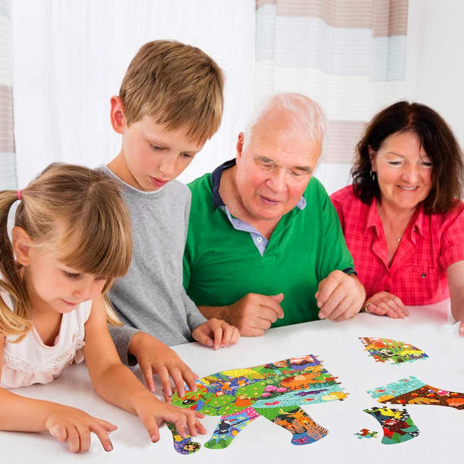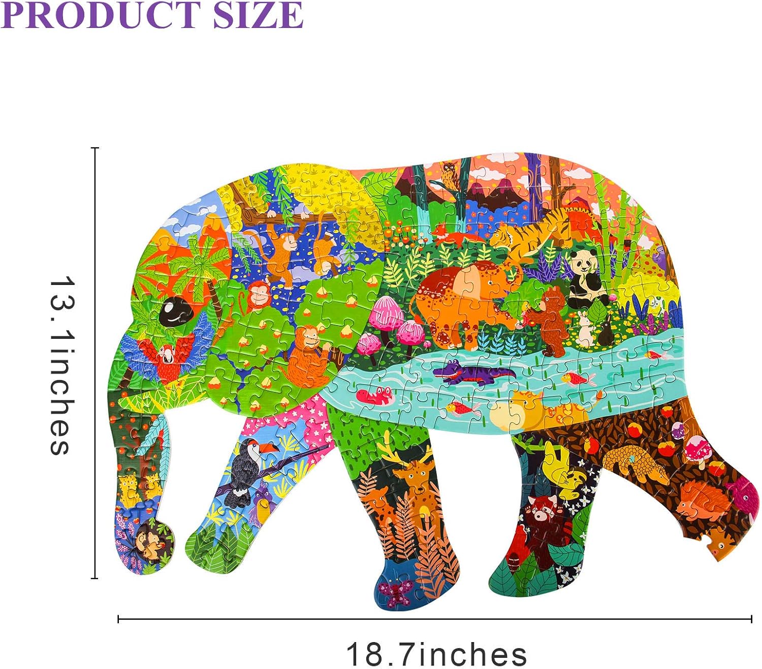 【Distinctive Animal Formed Puzzles】:The elephant form ground puzzle is enjoyable and academic. You will discover many animals on this puzzle. Additionally, Animal Formed puzzles good for adults and children.