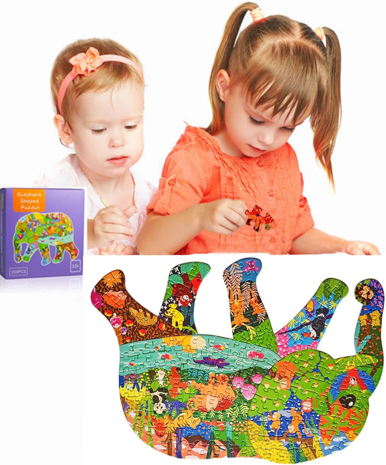 【Cute Elephant Jigsaw Puzzle 】:This cute animal formed puzzle have 200-Piece. Completed dimension: 18.4” x12.9” x0.07”.