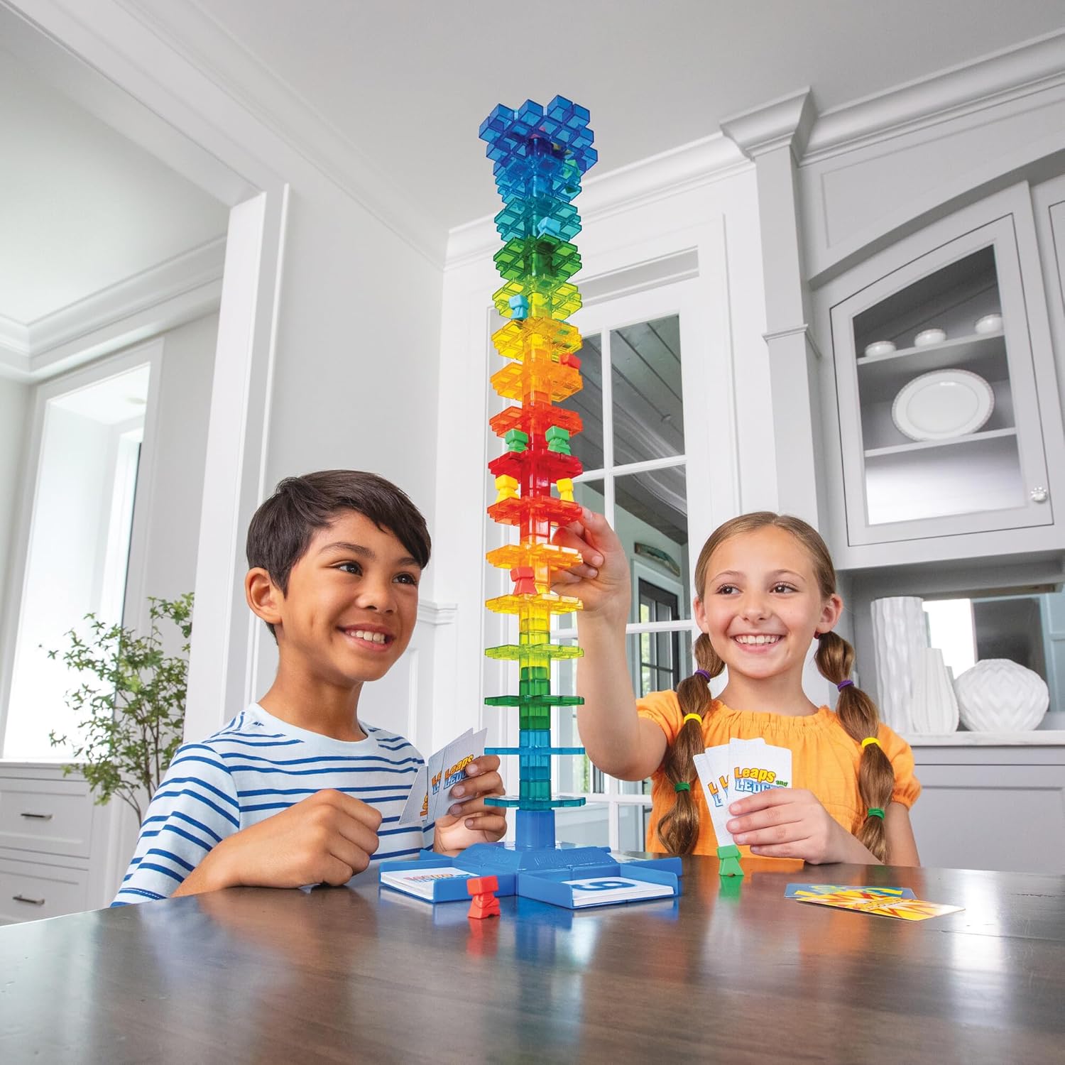 GAMES THAT TEACH: Leaps and Ledges from MindWare is a enjoyable technique to strengthen math, technique and problem-solving expertise. MindWare places a twist to the normal board sport with the intriguing design of Leaps and Ledges—sending daring gamers up and down as a substitute of round. Take pleasant competitors to a brand new stage as you race your opponents to the highest of this colourful tower!