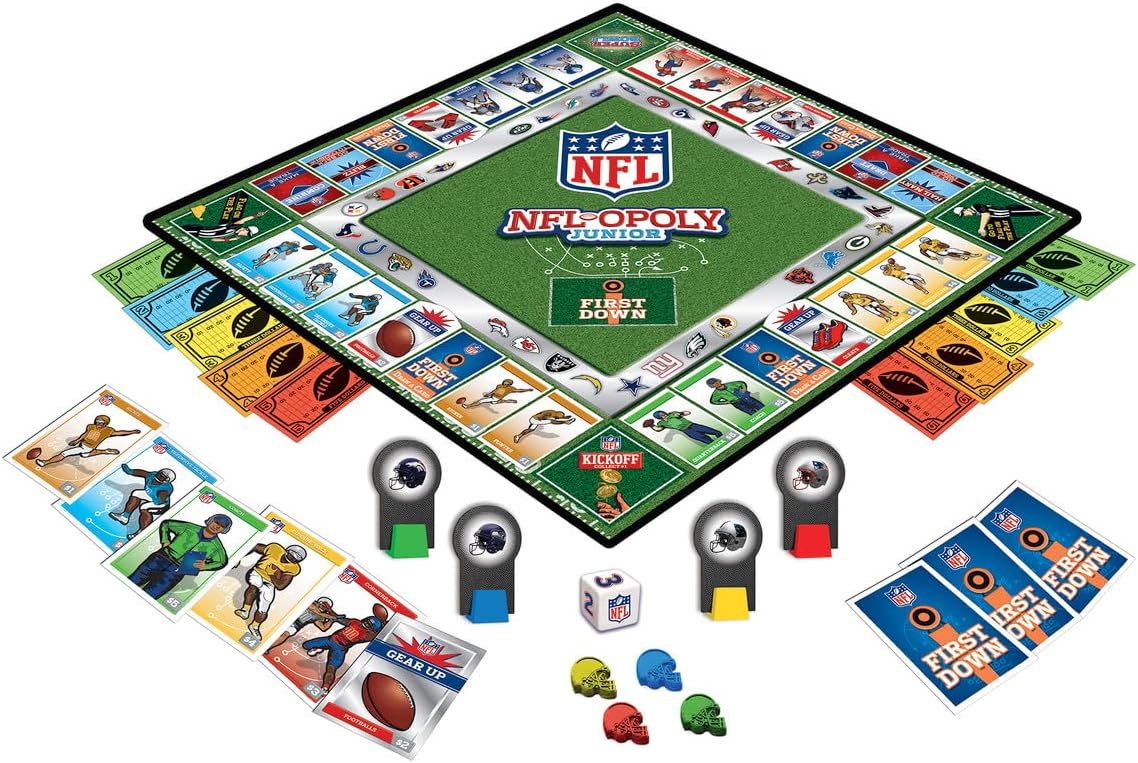 NFL Collector’s Version: MasterPieces NFL-Opoly Junior Board Sport that includes 32 workforce stickers, 44 helmet markers, and official NFL branding.