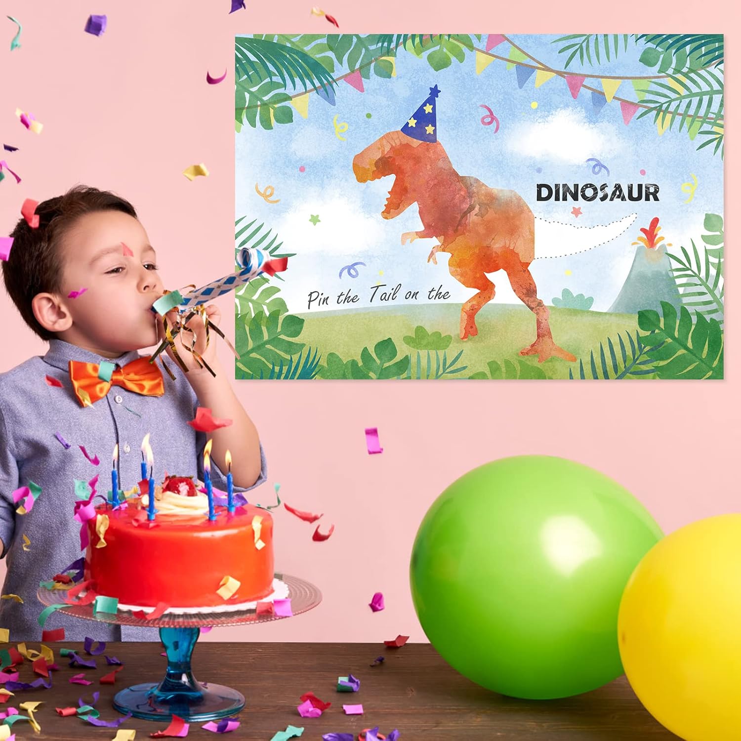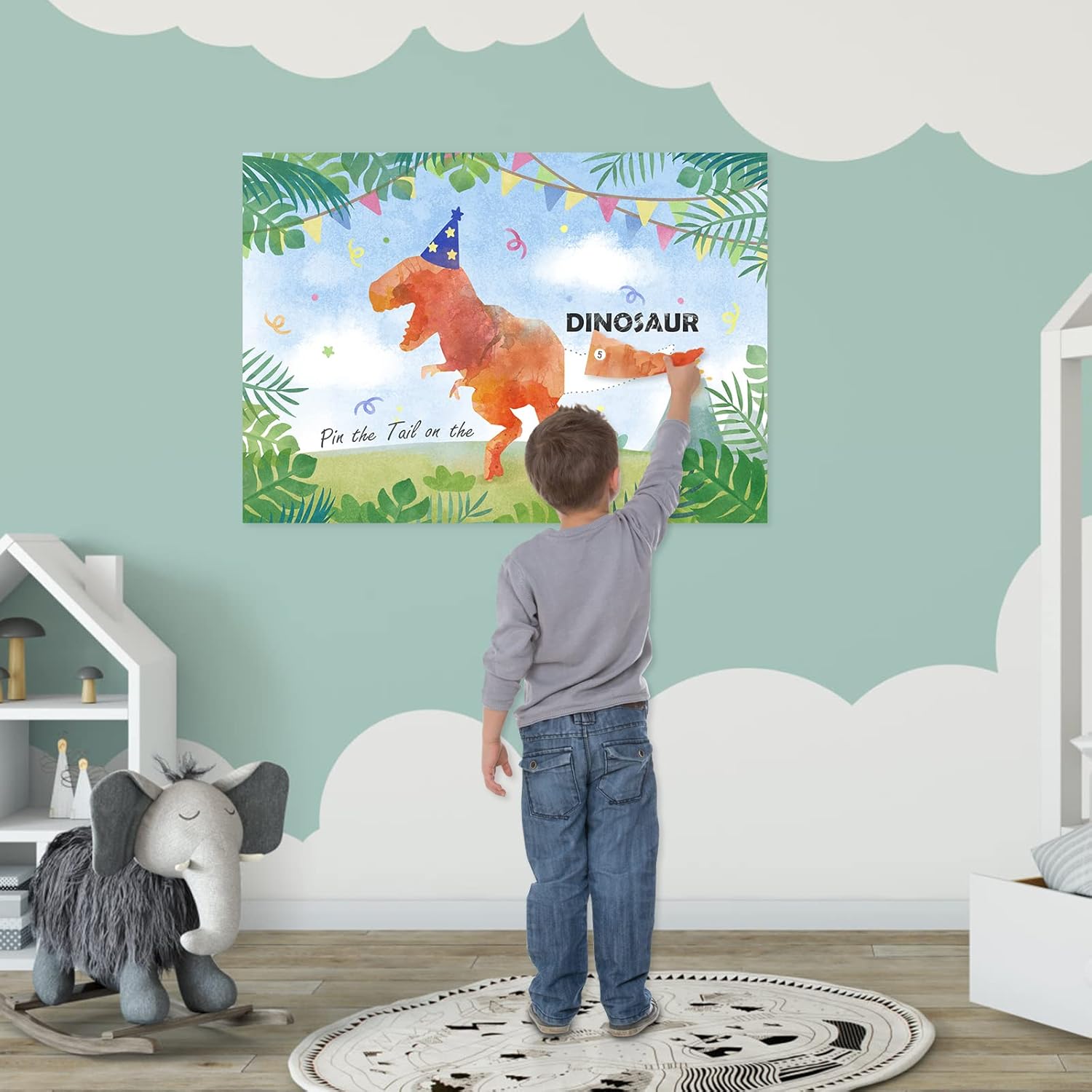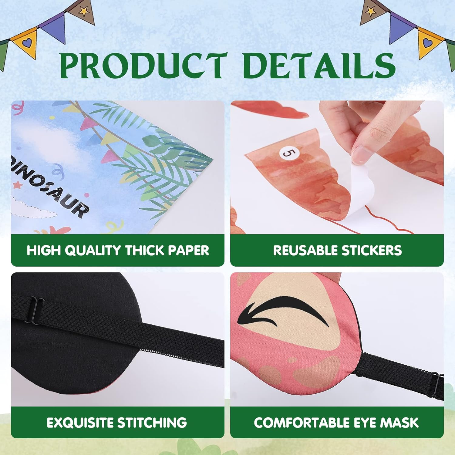 PACKAGE INCLUDING – 28″x 20″ giant dinosaur poster, a mushy dinosaur blindfold, 24PCS tail stickers and 20 PCS glue dots.