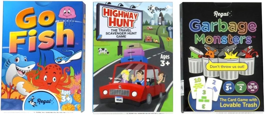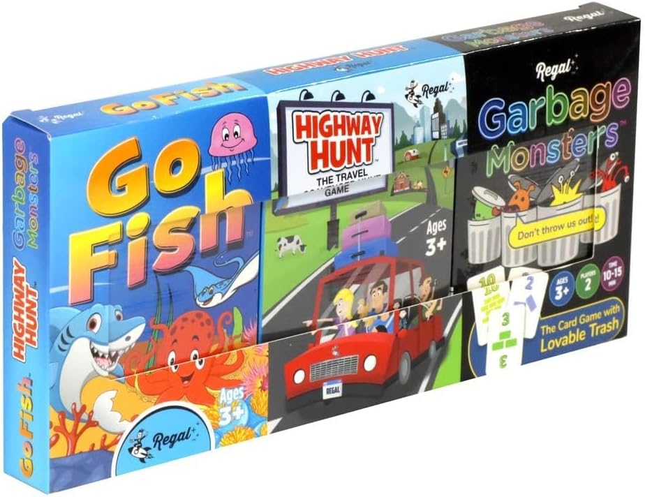 THREE GAME BUNDLE – This Regal Video games 3 pack of card video games options Go Fish, Rubbish Monsters, and Freeway Hunt. Go Fish is the traditional matching sport, Rubbish Monsters is a quick paced sorting sport and Freeway Hunt is a traditional search and discover sport redesigned for on the highway.