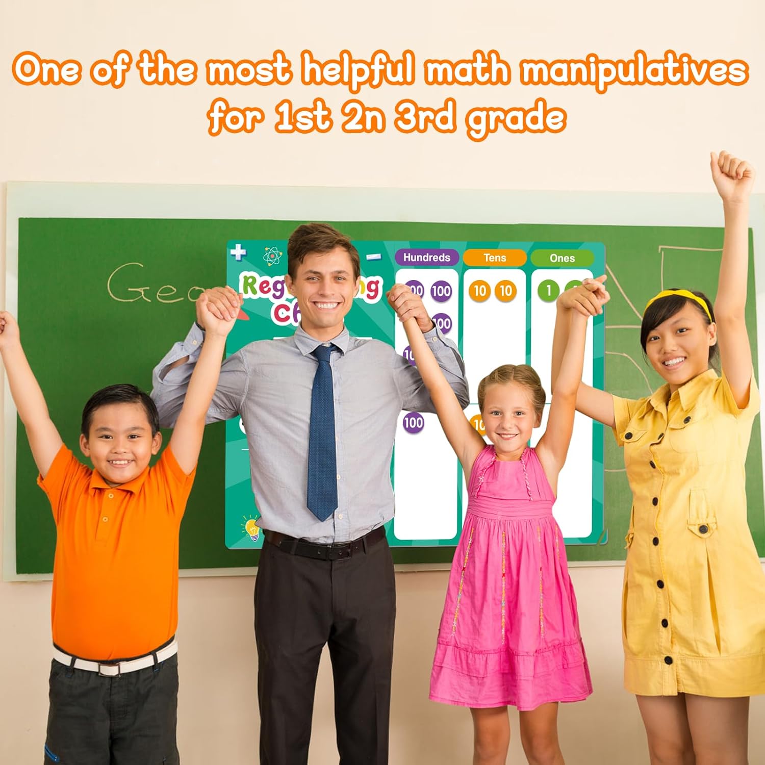 USEFUL WITH GREAT QUALITY: This Regrouping Math Base Ten Place Worth set with two giant magnet mats and the round quantity chips additionally comes with magnet again. The magnetic board thick however full robust magnetic again. You may placed on flat floor like desk, wall, fridge and magnetic dry erase board. Excellent visible instrument to show and study addition and subtraction.