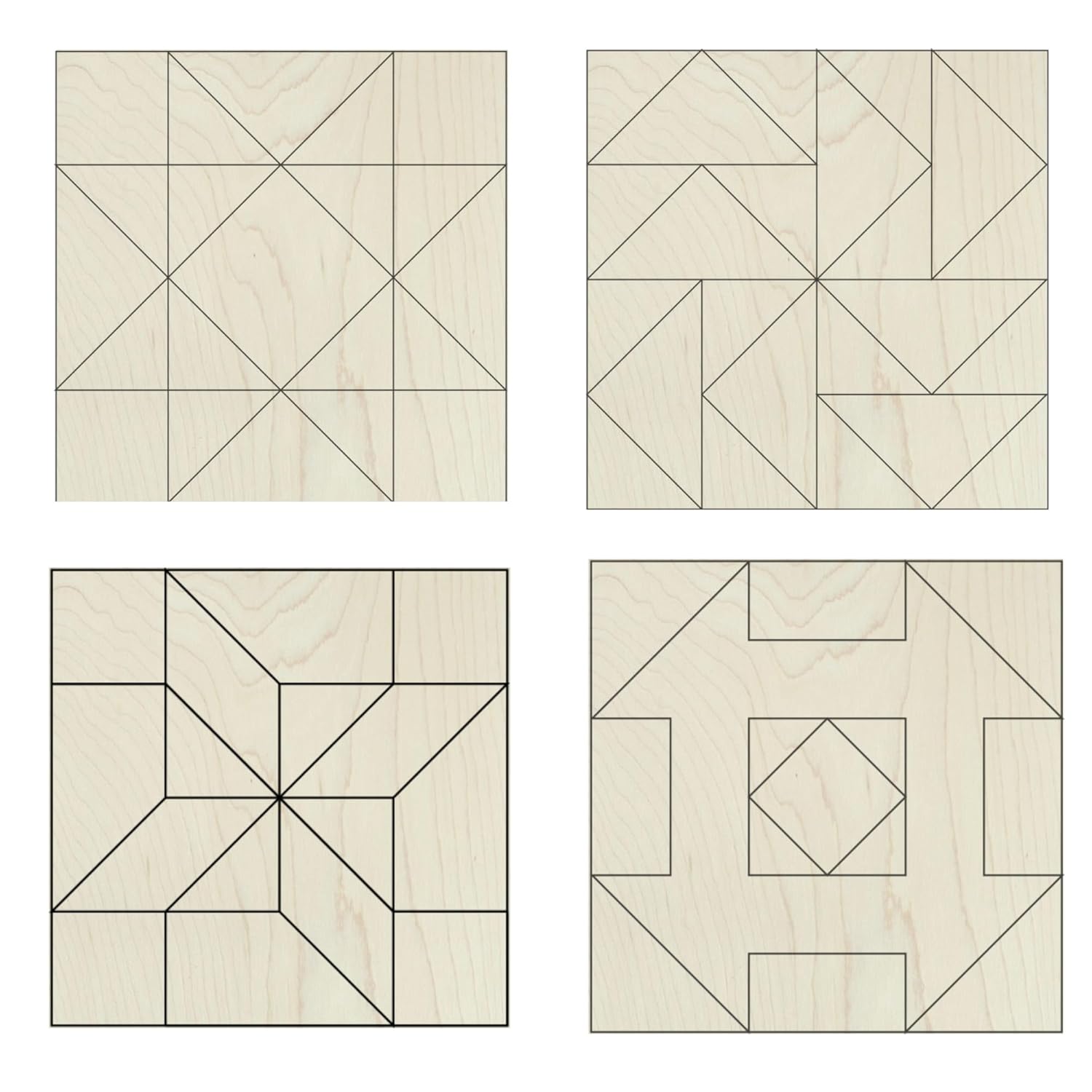 Set of 4 Coasters Small Barn Quilt Package DIY Sample Unfinished Wooden Quilting Block Signal Paintable Artwork for Adults and Youngsters (HST, Friendship Star, Dutch Sq., Flying Geese)