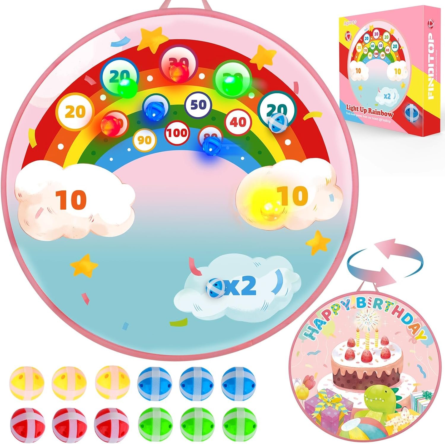 【Mild Up Rainbow】Throw the colour balls to mild up your rainbow. Or problem your children with this straightforward to play dart board set. Who can get the very best rating with 3 throws?