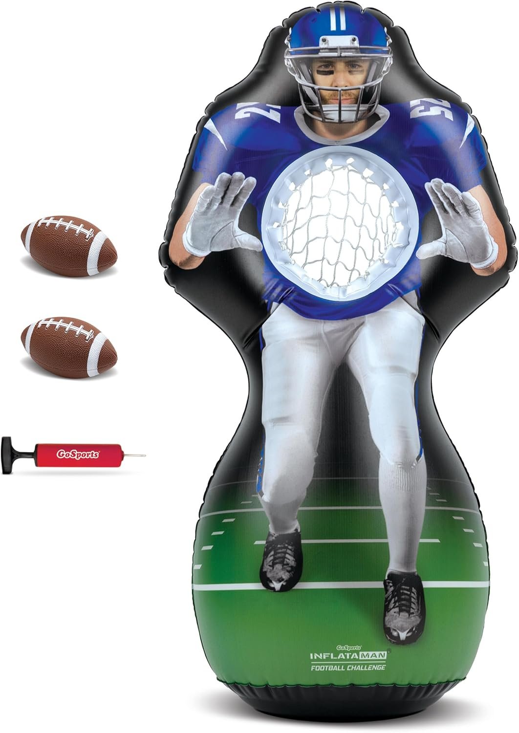4 FT FOOTBALL INFLATAMAN: Hours of soccer enjoyable for youths 3-8; Full recreation set contains 1 Inflataman soccer receiver, 2 inflatable footballs, and a ball pump