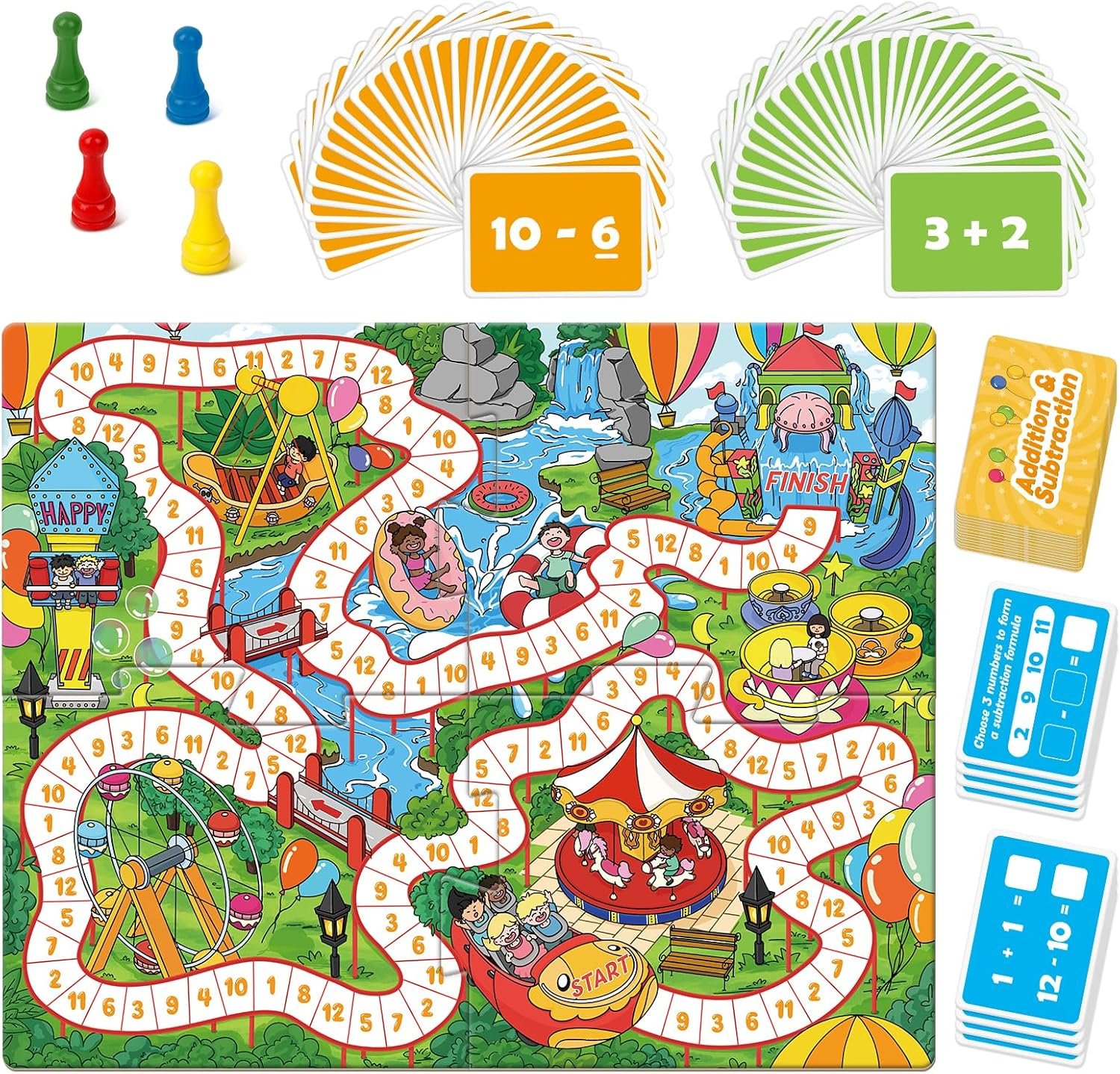 Interactive Studying with Recreation Items and Playing cards: Options 4 colourful sport items and 80 math playing cards centered on addition and subtraction, appropriate for each group and particular person play.