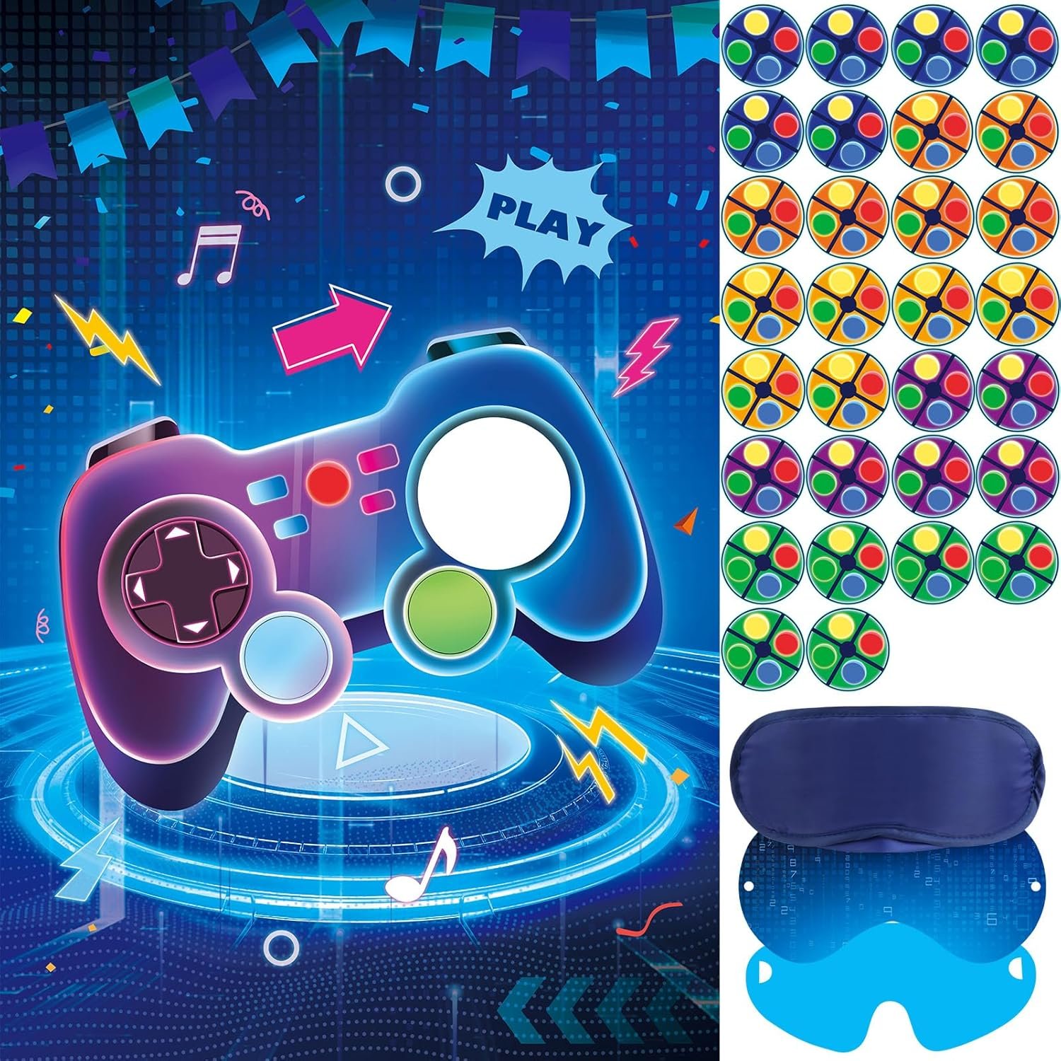 Pin the tail on the Bunny sport set – 1 PCS Pin the tail on the Bunny sport poster, 24 PCS reusable tail stickers, 1 PCS inexperienced eye masks, 16 PCS dot glues.
