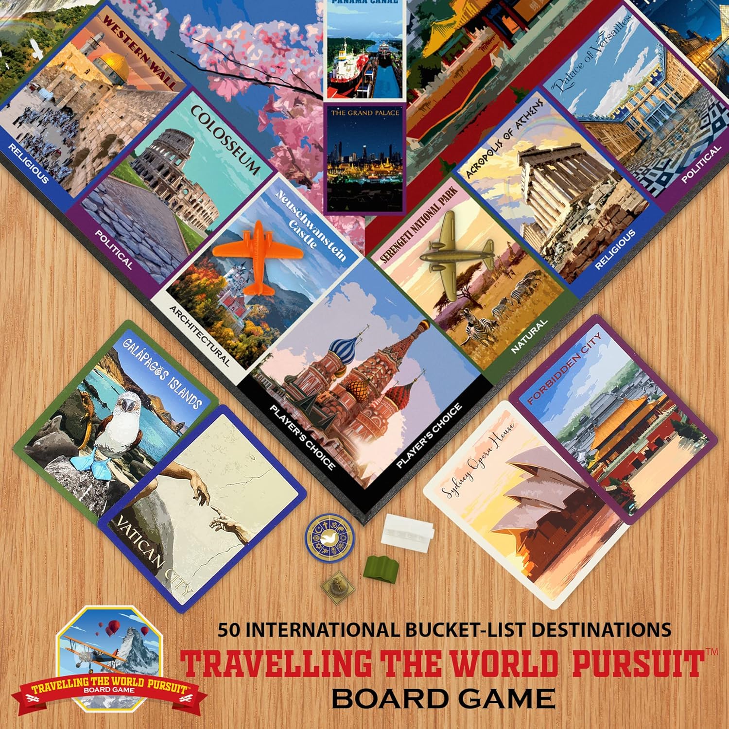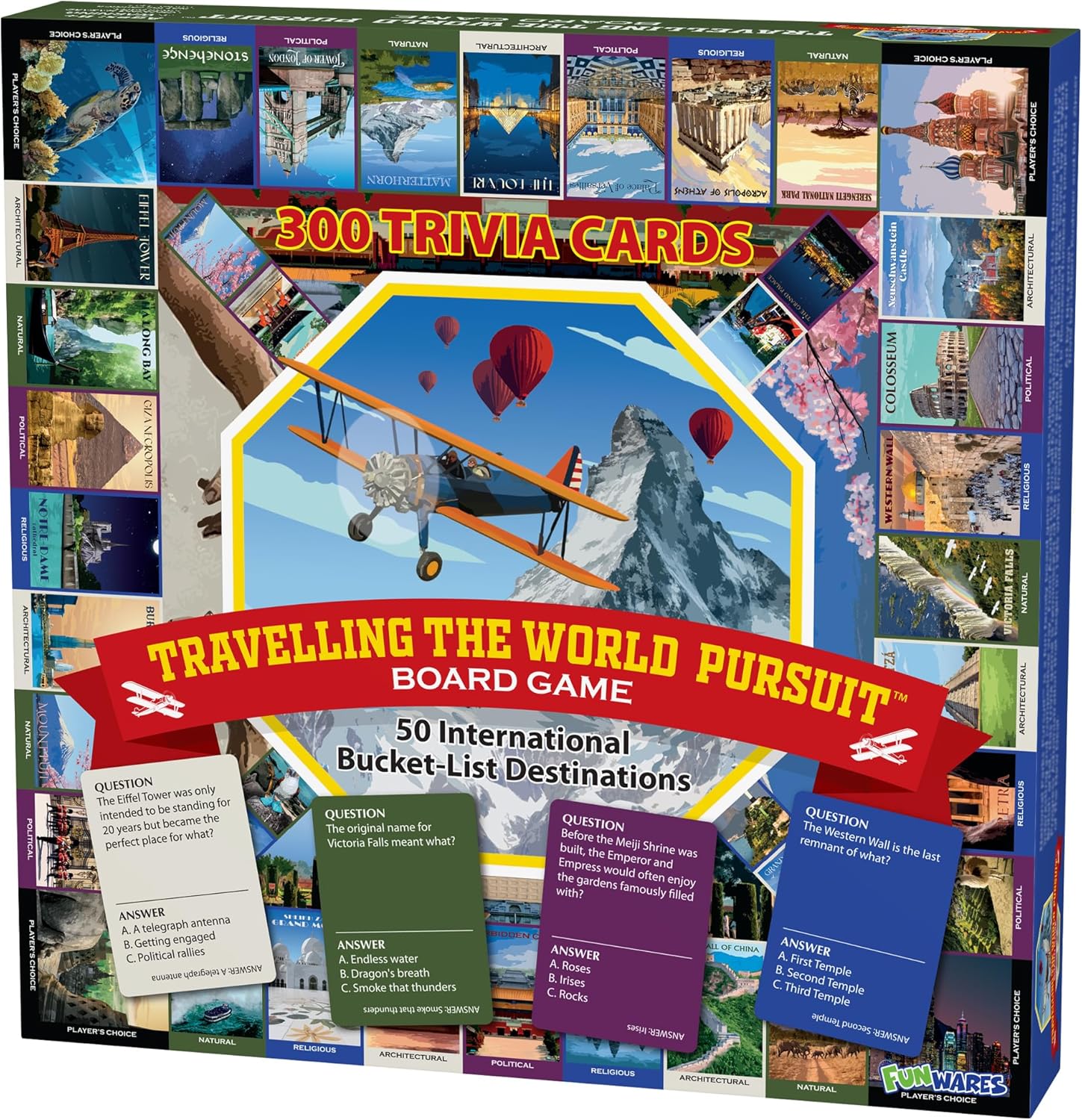 QUICK PLAY TRIVIA GAME: With classic poster model paintings, enjoyable sport items, and 300 trivia playing cards, Travelling the World Pursuit is certain to grow to be a sport evening favourite. Nice for teenagers, adults, {couples}, mates, and households who love trivia and journey.