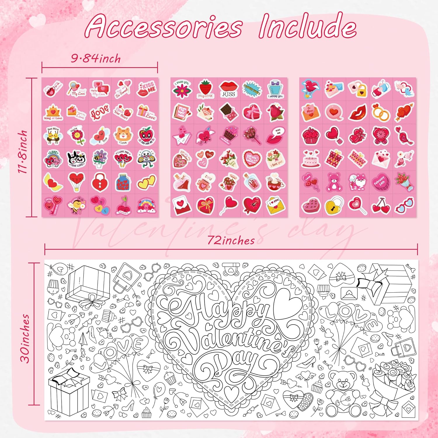 [Valentines Giant Coloring Poster]:valentines decorations.Dive into the spirit of affection with this large Valentines Day-themed coloring poster, measuring a powerful 72” by 30” . The large dimension supplies a fascinating canvas for youths to precise their creativity, making it a great centerpiece for classroom actions and a pleasant backdrop for Valentines Day events.