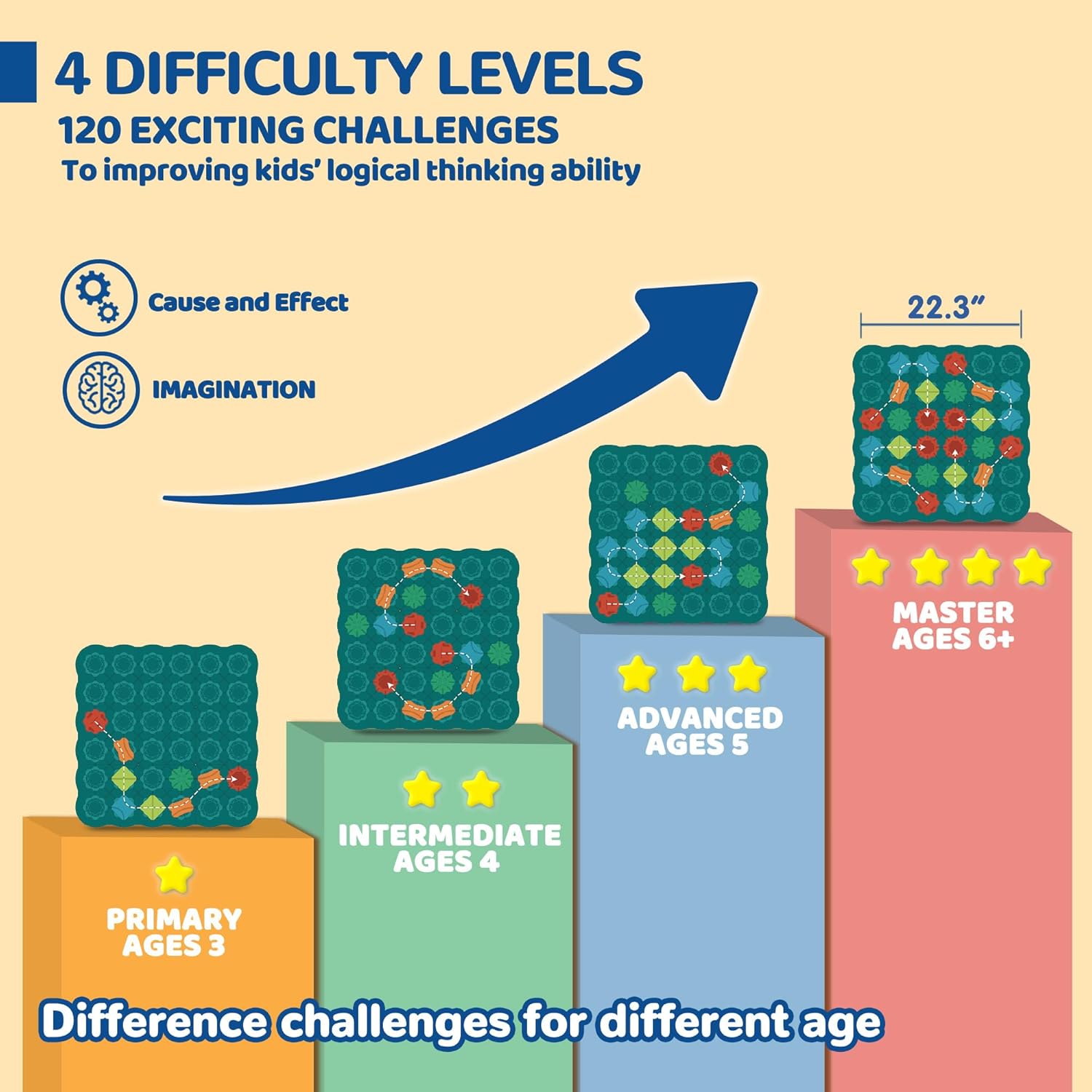 Domesticate Youngsters’s Complete Talents: Comply with the extent necessities to construct a connecting path from begin to end on the bottom plate utilizing designated items, let the automotive transport the marble ball to the tip easily. It’s good for coaching and bettering the child’s logical considering, focus and statement, shade cognition and find out about trigger and impact, greatest puzzles for youths ages 4-8